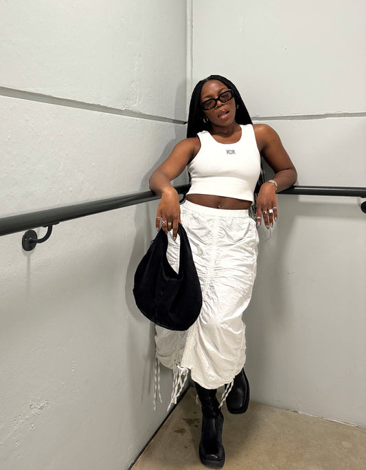 "Tried it on with the skirt and I don’t even know how to act! Need to make some plans just so I can wear it."